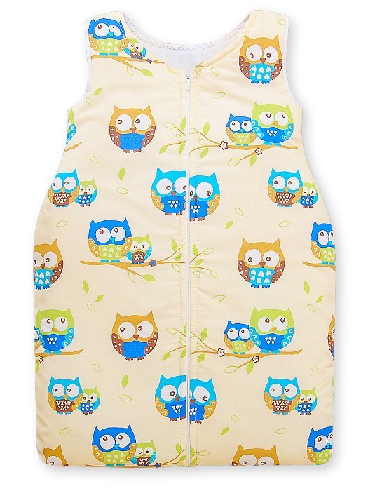 Śpiworek dla dzieci bawełniany M 6-12 mcy TOG 2.5 całoroczny sowy na kremowym tle