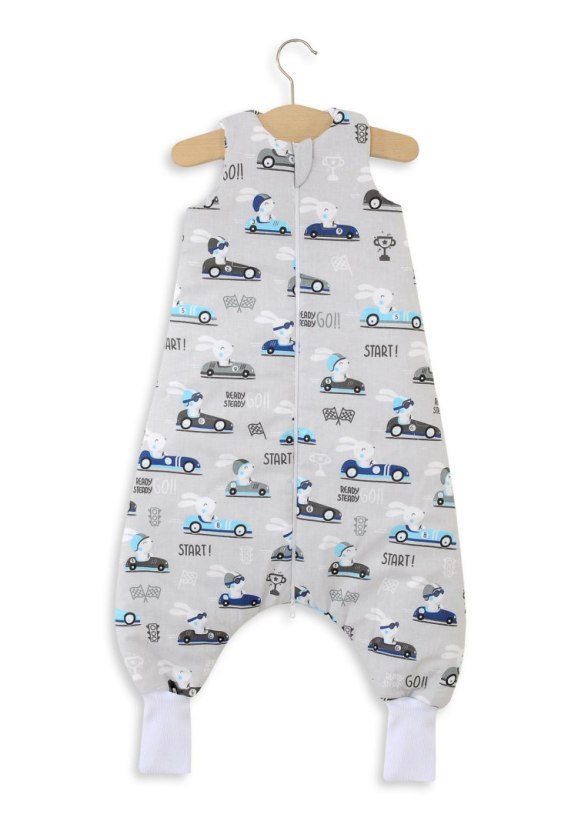 Śpiworek dla dzieci z nogawkami bawełniany ocieplany L 9-24 mcy TOG 2.5 - zające w autkach szare