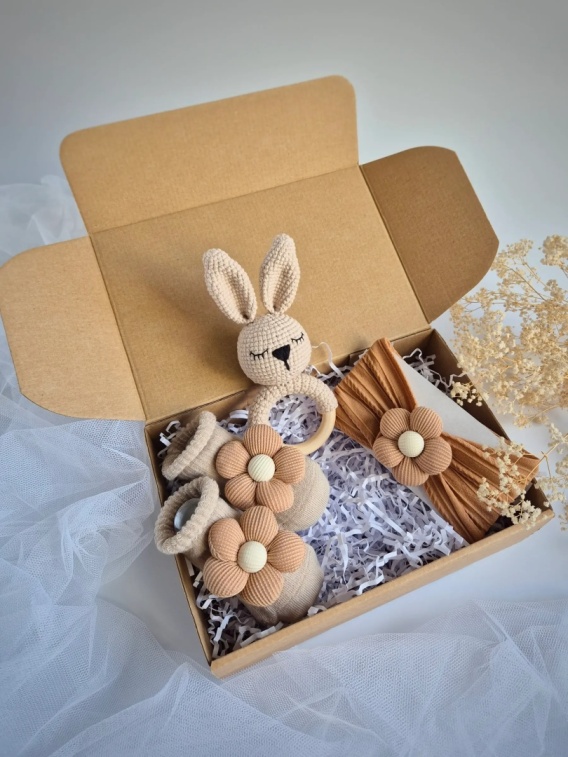 Skarpetki z kwiatuszkami: wykonane z miękkiego, elastycznego materiału o wysokiej przepuszczalności powietrza. Ozdoby (tkaninowe kwiatki) są trwale przymocowane, jednak ze względu na delikatny charakter produktu zaleca się używanie ich pod nadzorem osoby dorosłej.